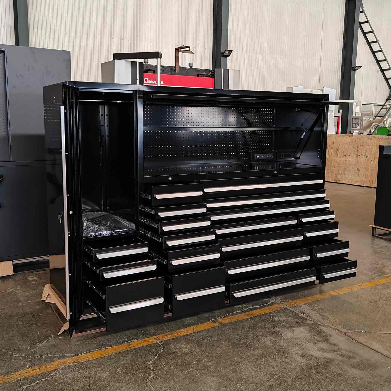 L'armadio degli utensili multifunzionale nero è realizzato in acciaio a freddo che fornisce una migliore resistenza e finitura superficiale.CianoPuò dimensione, configurazione e accessori personalizzati per le tue esigenze. Il nostro mobile utensile multifunzionale nero può integrare la funzionalità, ridurre il movimento e aumentare l'efficienza. Ha un rivestimento in polvere resistente a olio, sostanze chimiche e abrasione. Infine e, soprattutto, soddisfa gli standard del settore.