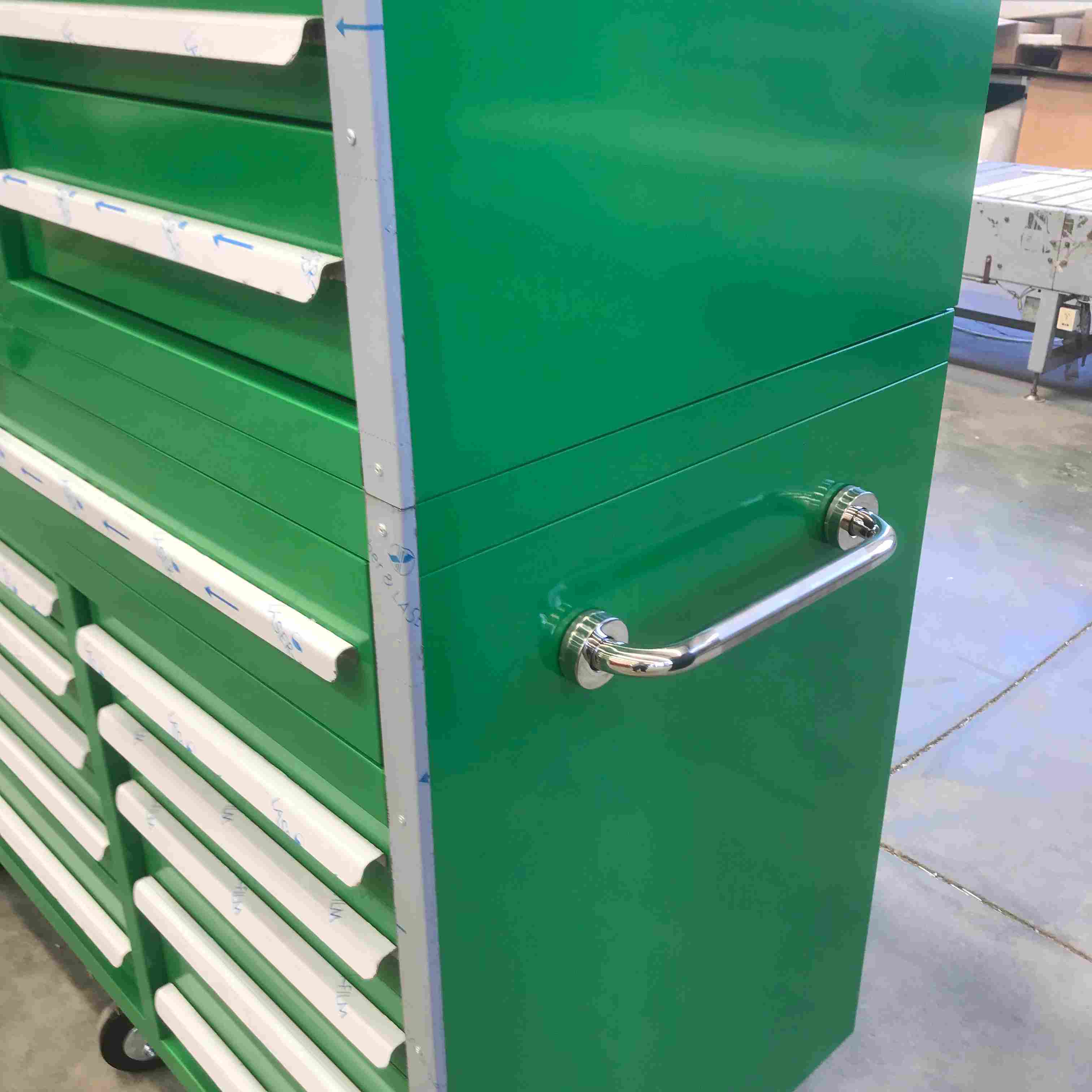 L'armadio di stoccaggio del rollo a freddo viene utilizzato per conservare gli strumenti manuali, gli utensili elettrici, i pezzi di ricambio meccanici e le piccole attrezzature in industria, workshop e casa. L'elevata capacità di carico e il design mobile consentono ai lavoratori di accedere facilmente agli articoli in diverse workstation.