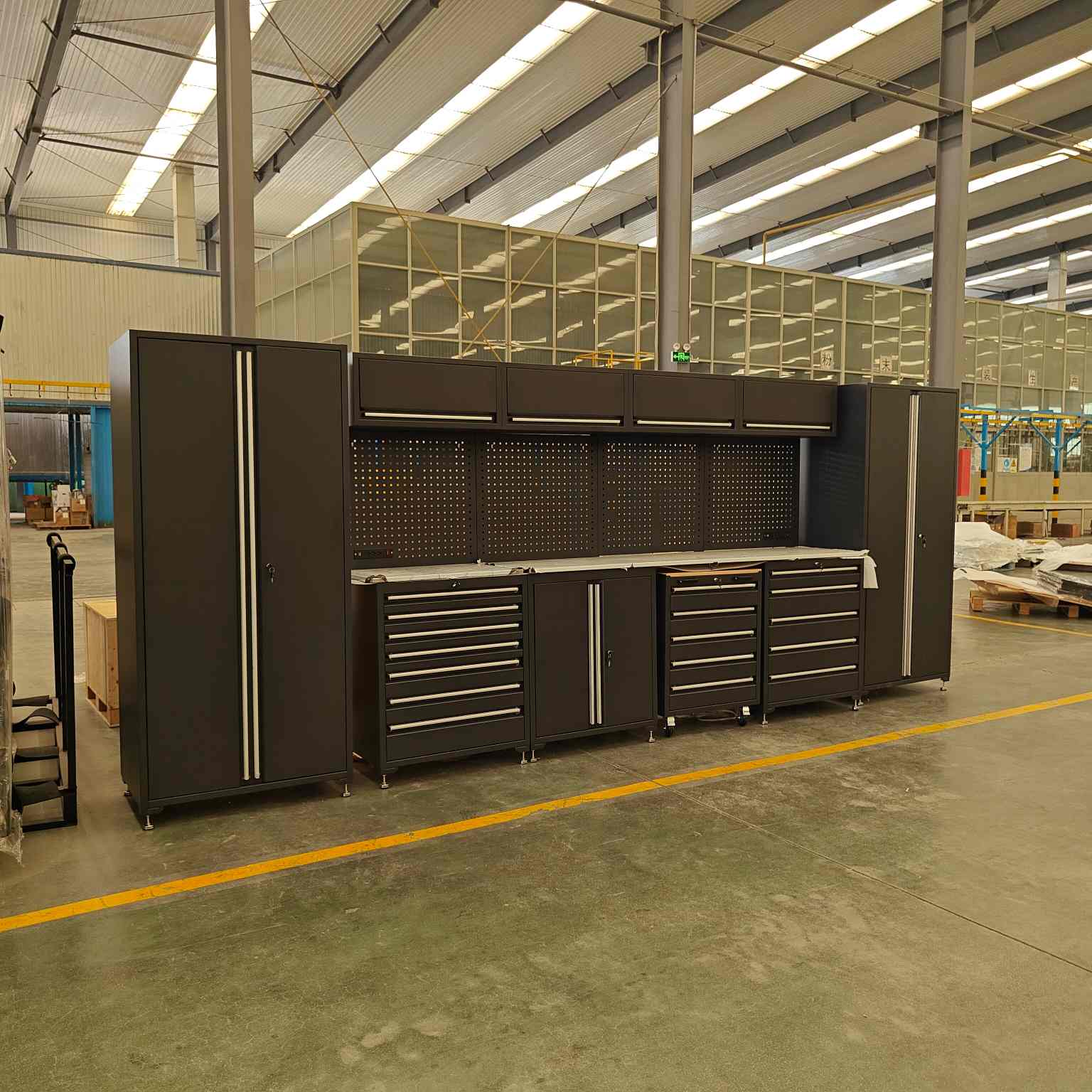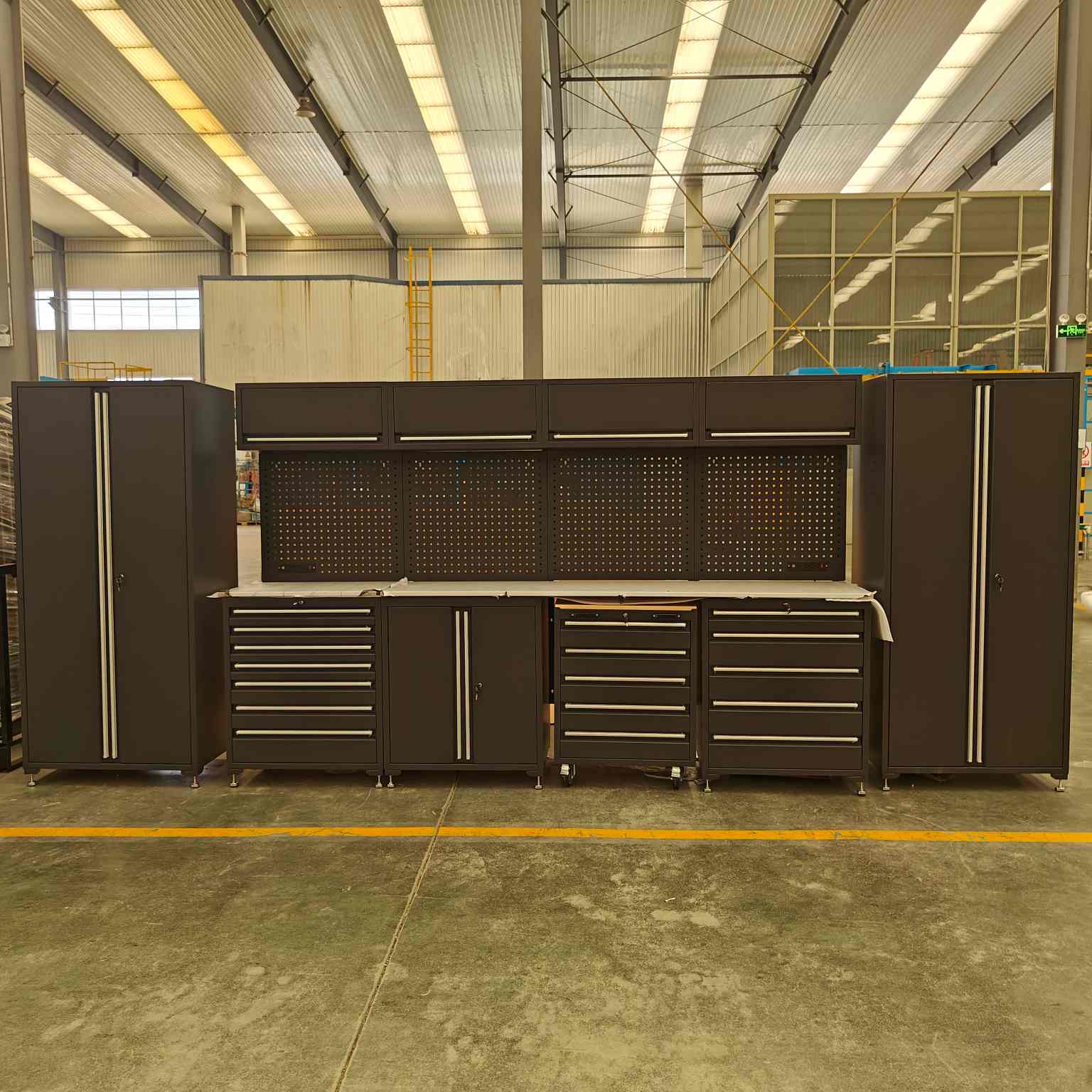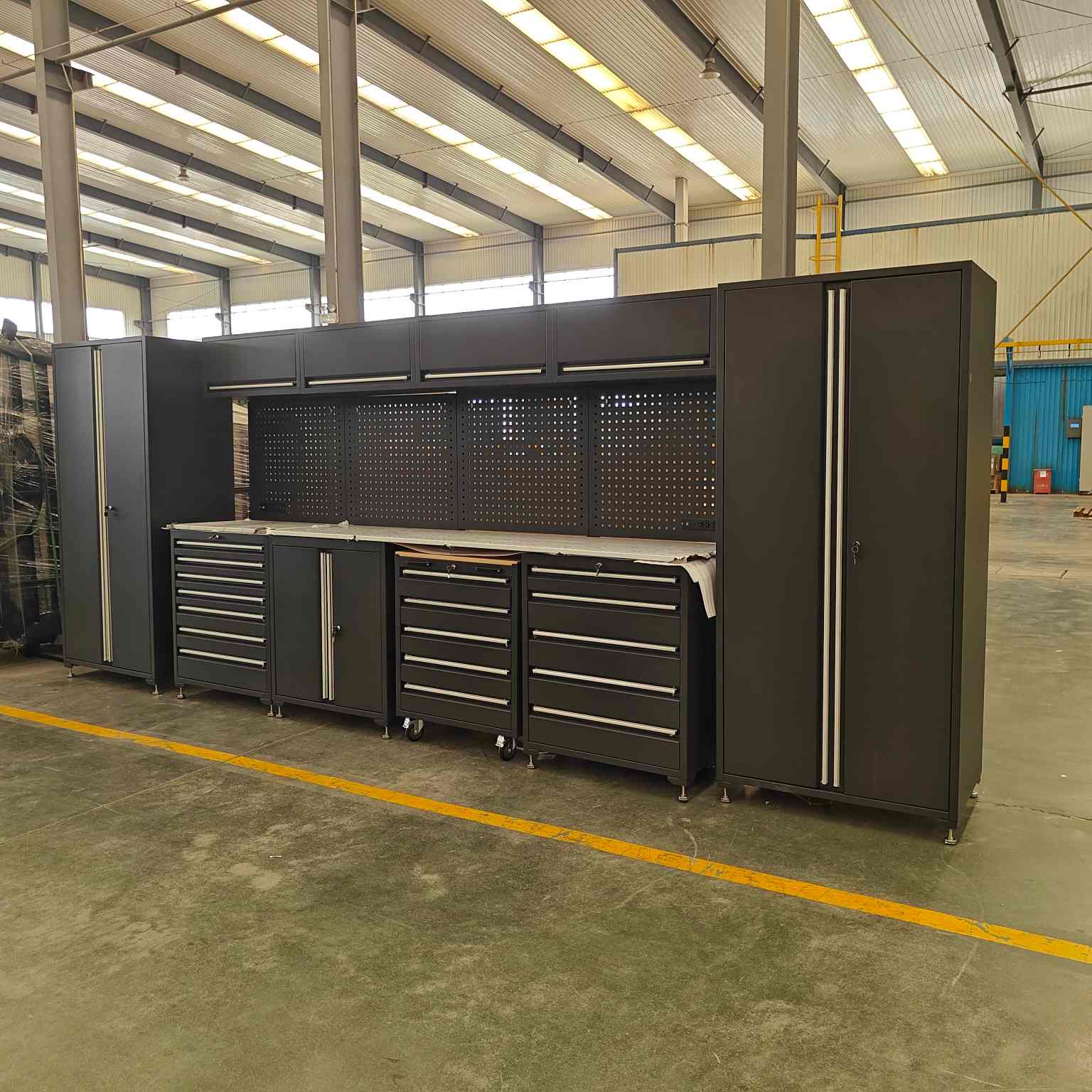 3. Set di armadietti per garage in acciaio a freddo e trasporto di parti di macchinari pesanti, strumenti di precisione e kit di manutenzione.