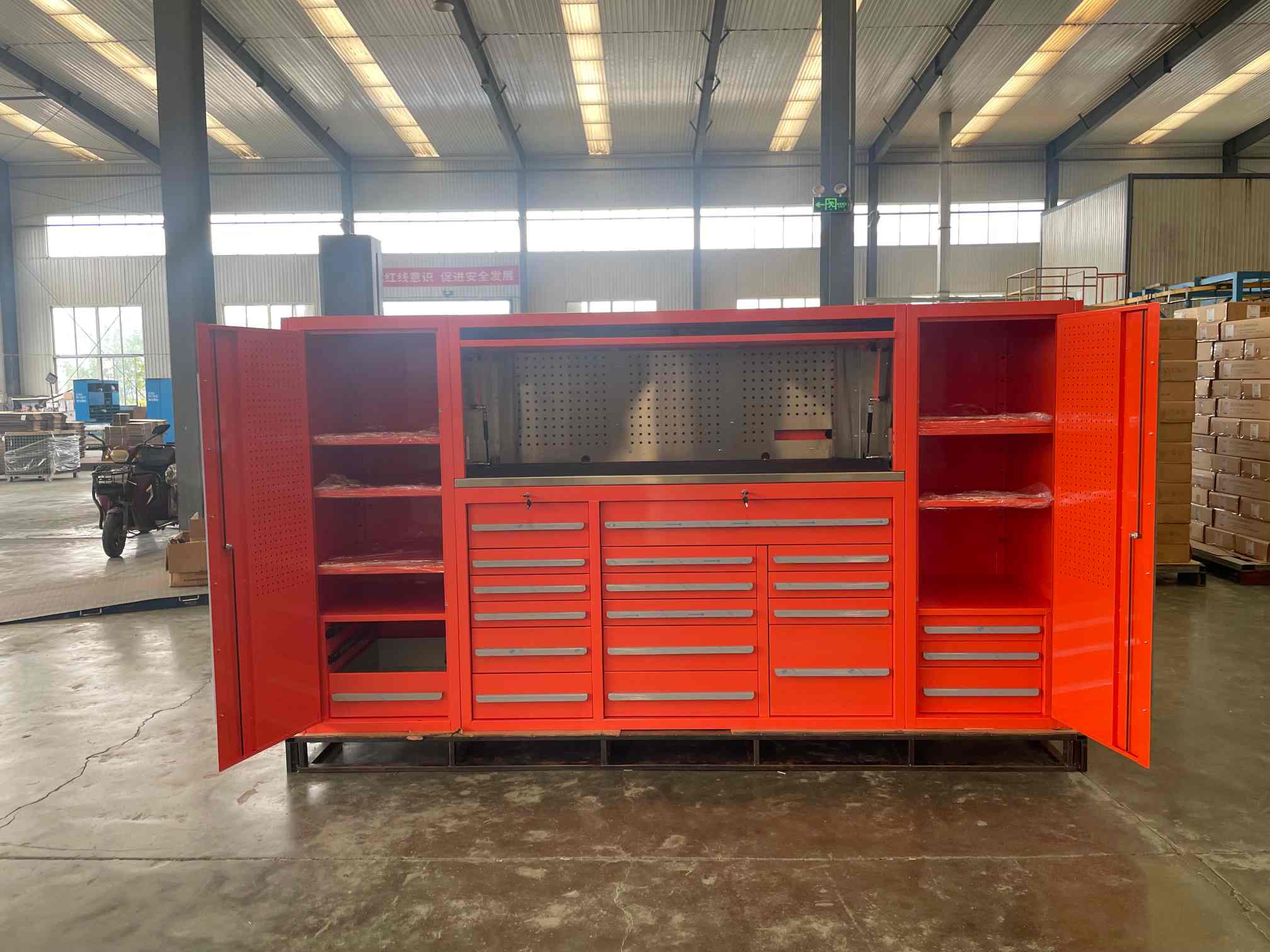 IOL'armadio per utensili in acciaio a freddo è progettato per seminari professionali, fabbriche, garage e ambienti industriali in cui l'organizzazione e la durata sono fondamentali. Realizzato in acciaio a freddo premium e rifinito con rivestimento anti-graffio, questo mobile offre resistenza superiore, resistenza alla corrosione e funzionalità a lungo termine.