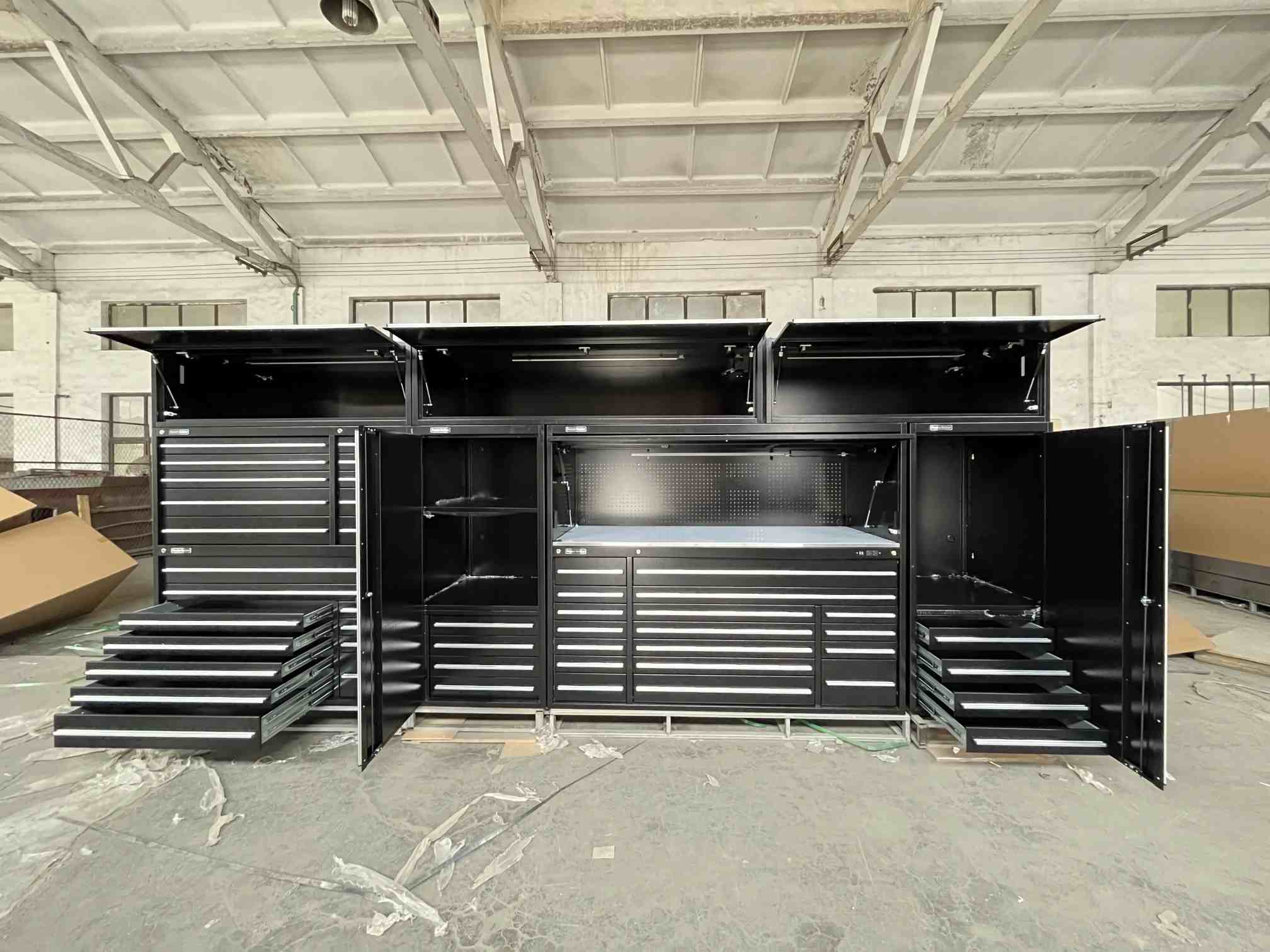 Il cabinet per utensili da garage del modulo è un sistema di archiviazione degli strumenti composto da più moduli indipendenti. Ogni modulo ha funzioni e spazi di archiviazione specifici, come i moduli del cassetto per la conservazione di piccoli strumenti e moduli delle porte del mobile per ospitare strumenti o attrezzature di grandi dimensioni. Gli utenti possono combinare liberamente questi moduli in base alle loro reali esigenze per creare un sistema di archiviazione di strumenti personalizzato. Rispetto ai tradizionali mobili per strumenti integrati, offre una maggiore flessibilità e adattabilità, consentendo regolazioni in base alle variazioni della quantità e dei tipi di strumenti, ottenendo una personalizzazione personalizzata veramente.