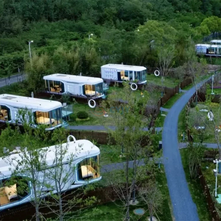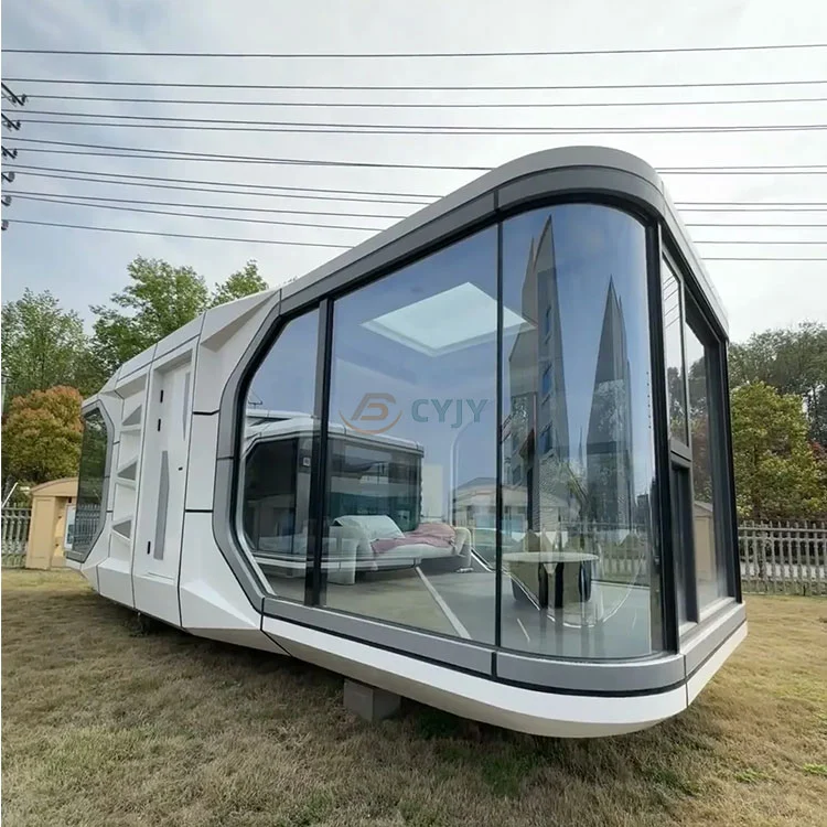 L'interno della capsula dello spazio multifunzionale adotta il design modulare, divide razionalmente aree funzionali come camera da letto, soggiorno, cucina, bagno, ecc. E ha un alto utilizzo dello spazio. Il design dei mobili è flessibile, come i divani possono essere convertiti in letti, armadi e tavoli da pranzo possono essere piegati e ritirati per soddisfare le esigenze di diverse scene viventi. Il lucernario panoramico e il design del vetro trasparente aumentano l'illuminazione e la visione, consentendo ai residenti di connettersi perfettamente con la natura.
