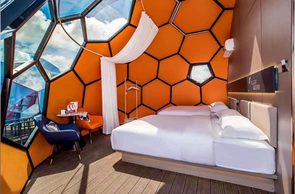 Le strutture in questa capsula Space Capsule sono molto complete. C'è un letto, un bagno, un tavolo, un divano e una doccia separata all'interno, che ti dà una sensazione di casa. Il design della casa capsula dello spazio superiore star si basa su un'ottima idea: lascia che le persone si sentano vicine allo spazio pur rimanendo comode. Ha uno speciale guscio esterno rotondo in grado di proteggere le persone all'interno dell'ambiente duro. L'interno è progettato per essere accogliente, con abbastanza spazio per le persone che si muovono facilmente.