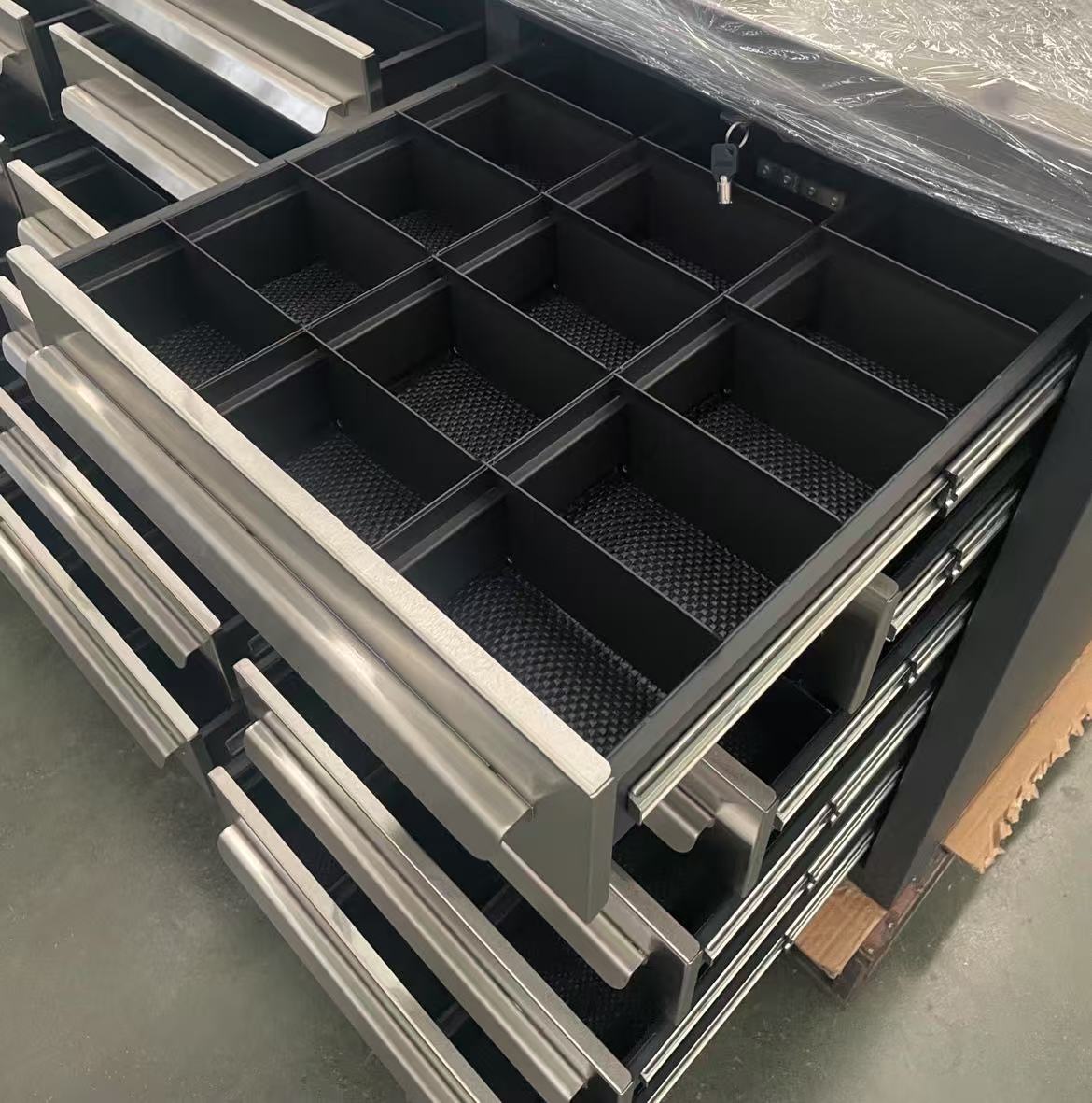 Una caratteristica straordinaria di questa spedizione è la configurazione avanzata del cassetto. Ogni cassetto è dotato di vetrini di precisione a sfera, garantendo un'operazione eccezionalmente regolare e senza sforzo, supportando un'estensione completa al 100%. Ciò consente agli utenti di accedere anche agli strumenti archiviati sul retro senza problemi, migliorando notevolmente comodità ed efficienza.